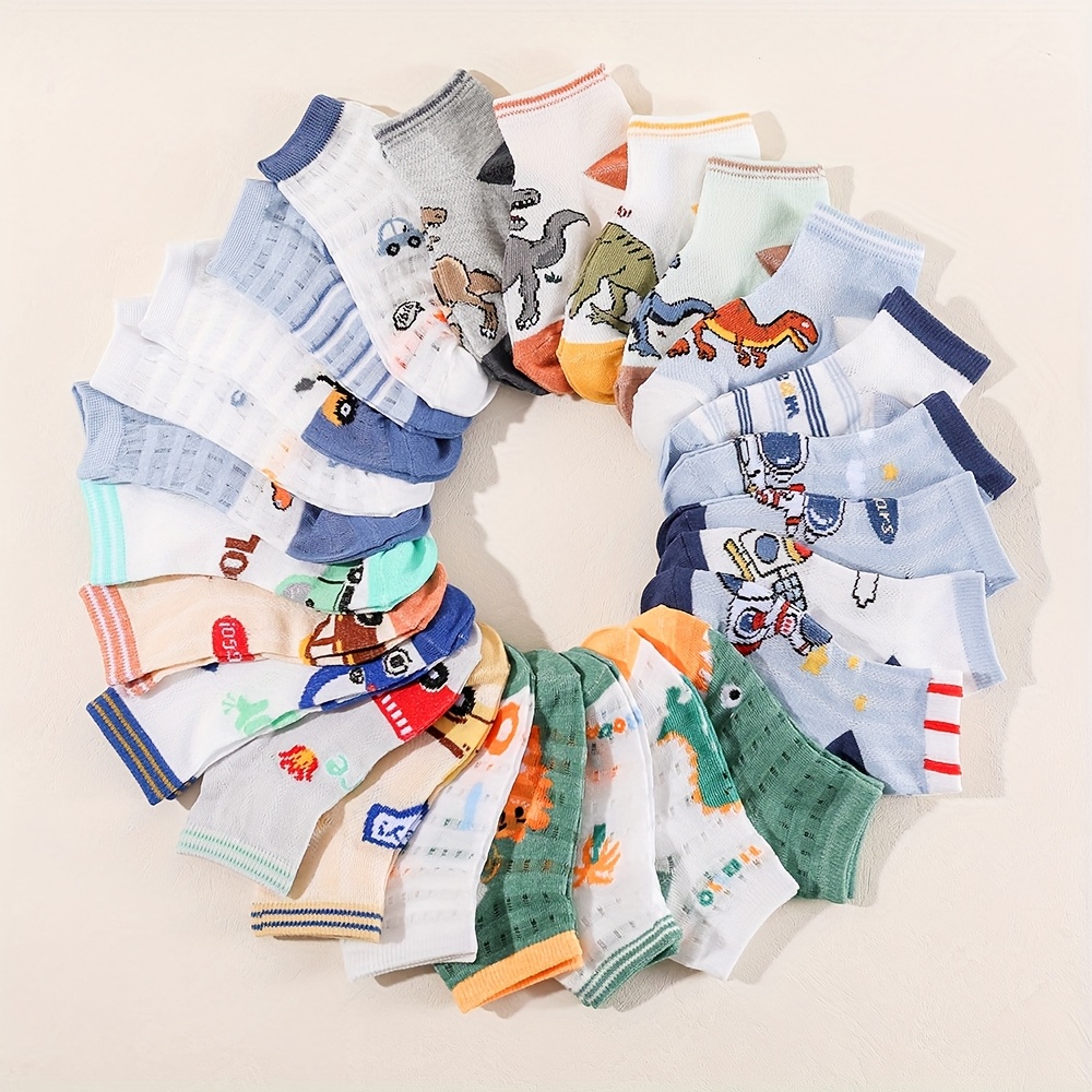 TEMU 10-pack Boys' Socks With Cartoon Dinosaur, Ca...