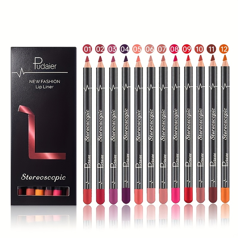 TEMU Pudaier 12-color Waterproof Lip Liner Set, Lo...