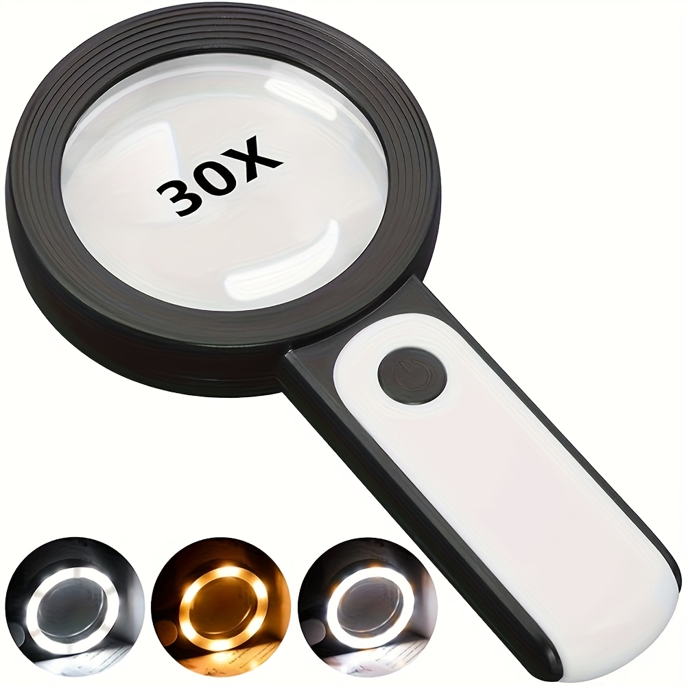TEMU Podświetlana Lupa, 30X Ręczna Duża z 18 LED C...