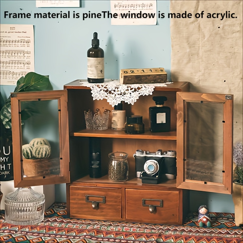 TEMU 1pc Vintage Wooden Cosmetics Storage Cabinet,...