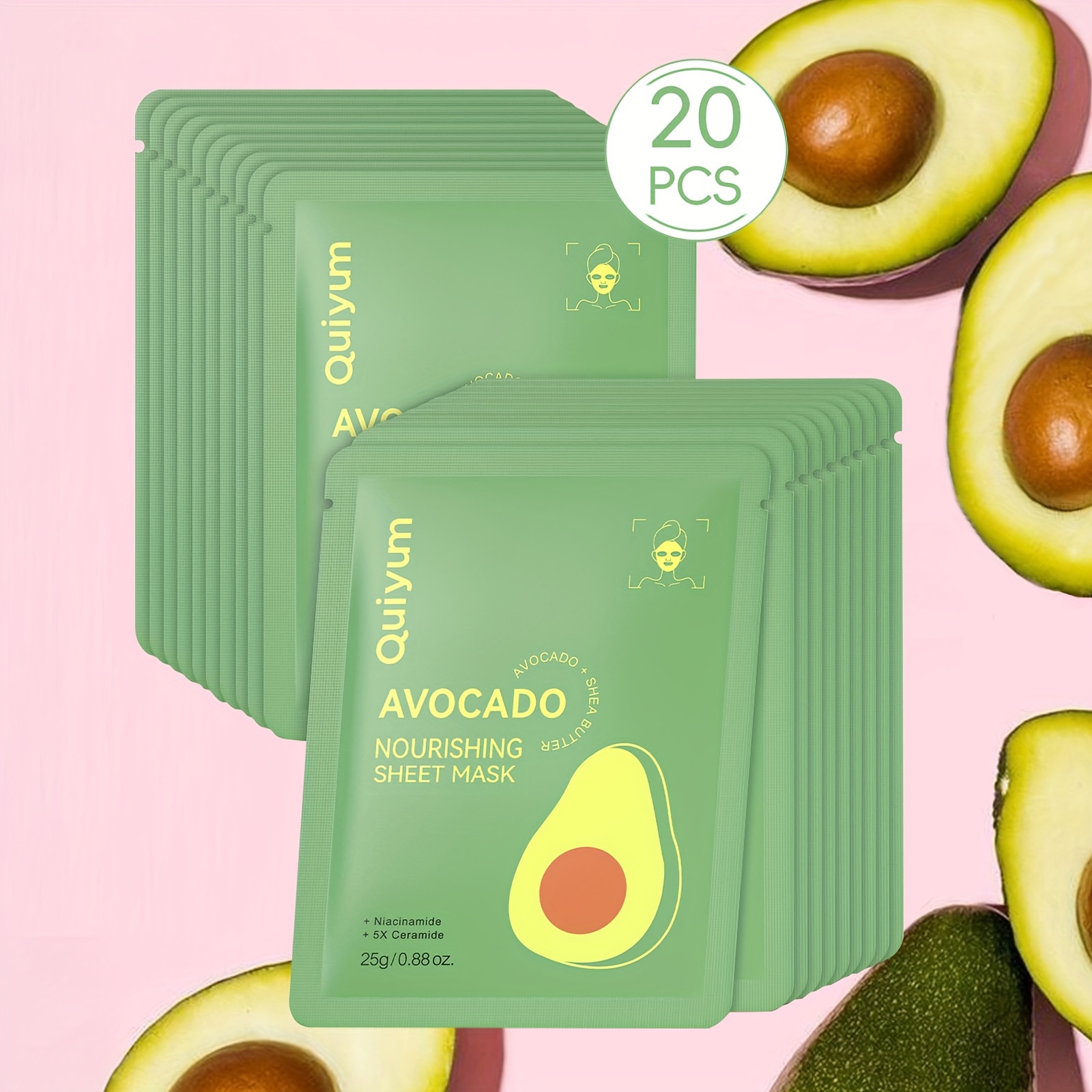 TEMU 20pcs Quiyum Avocado Nourishing Sheet Mask, W...