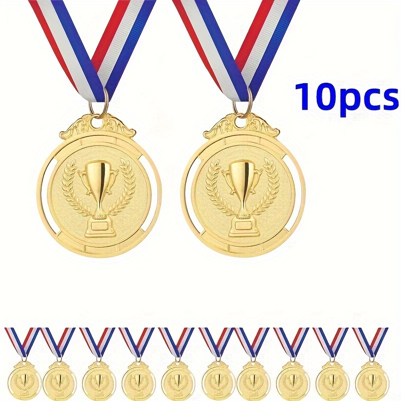 TEMU 10-pack Golden Alloy Medals With & Blue Ribbo...