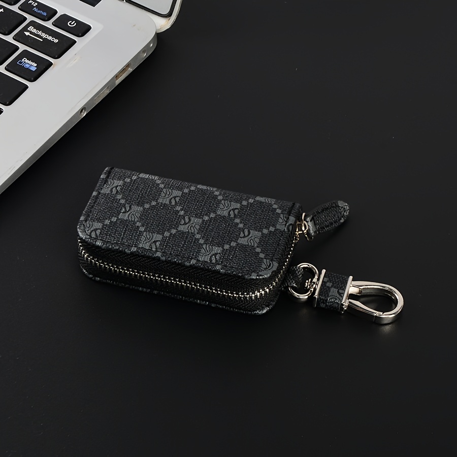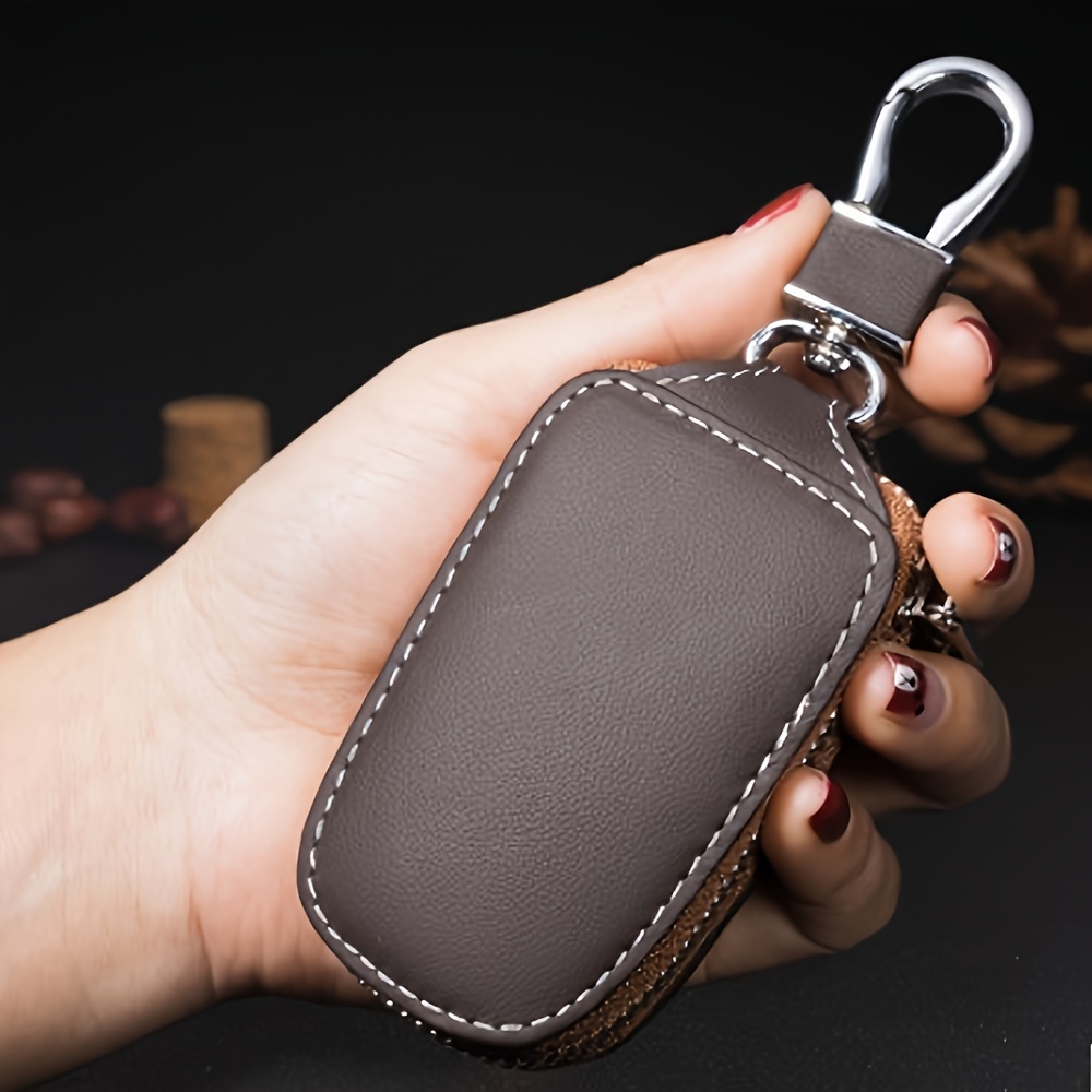 TEMU Unisex Car Key Cover With Zipper - Black Leat...