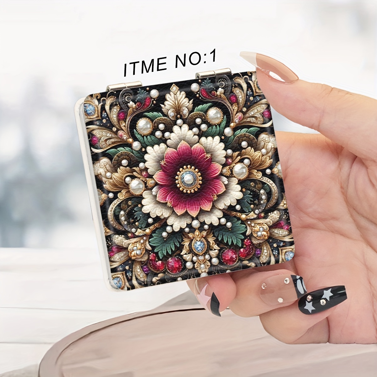 TEMU Rhinestone Portable Folding Makeup - -sided, ...