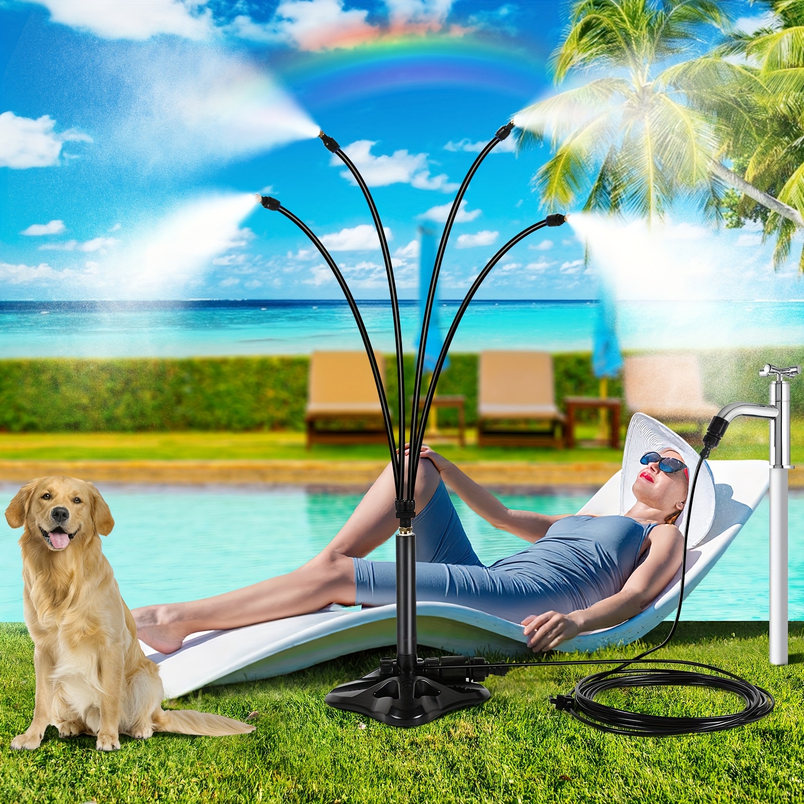 TEMU 26.5ft Portable Misting System Stand - Outdoo...