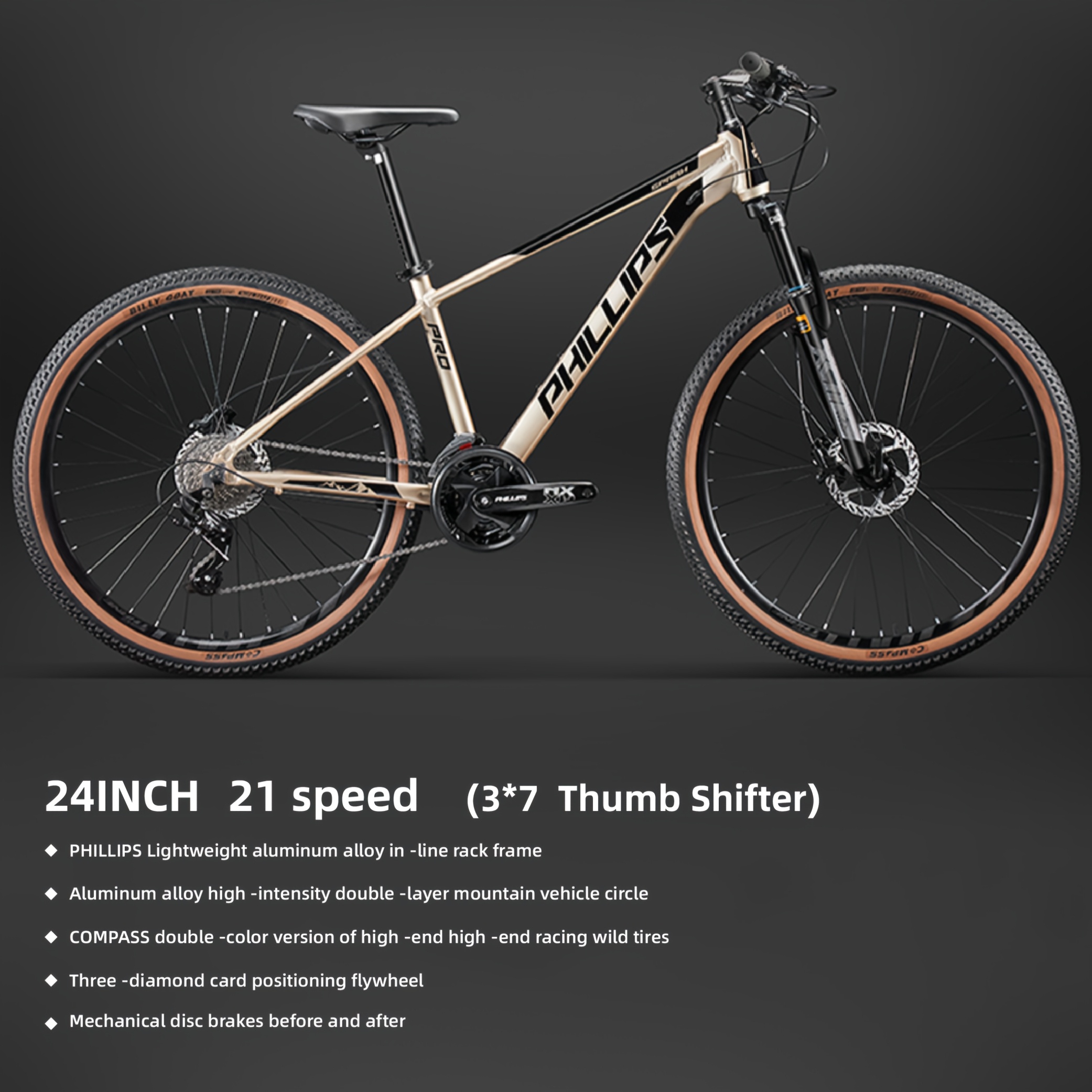 TEMU 필립스 24인치 바이크, 21단 알루미늄 합금, 충격 흡수, 성인용, 야외 스포츠...