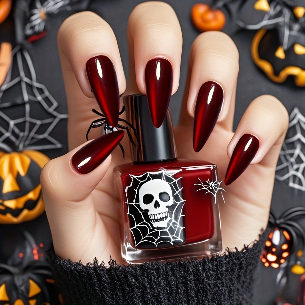 TEMU Wine Red Frosted Nail Art Finished Wearable N...