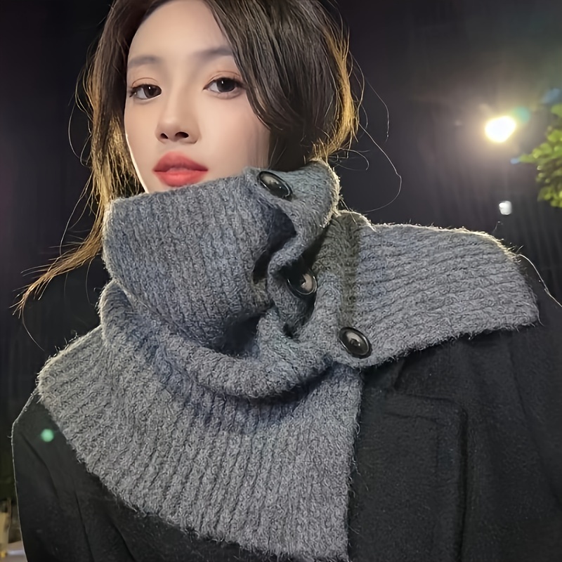 TEMU Winter Neck Warmer - Knitted Poncho With Elas...