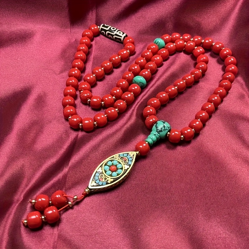 TEMU Bohemian Retro Colorful Fiber Bead Necklace W...
