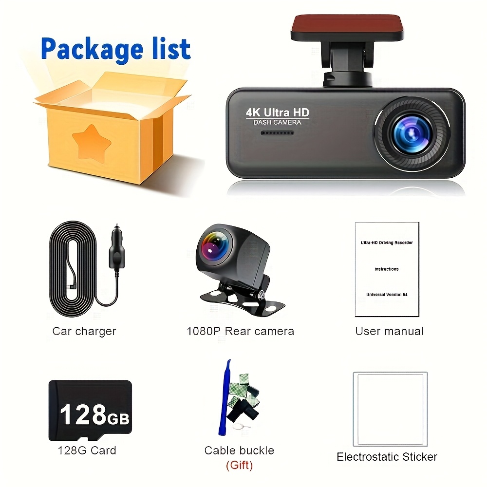 TEMU 4k/1080p Dash Cam Front And Rear, 170° Dashca...