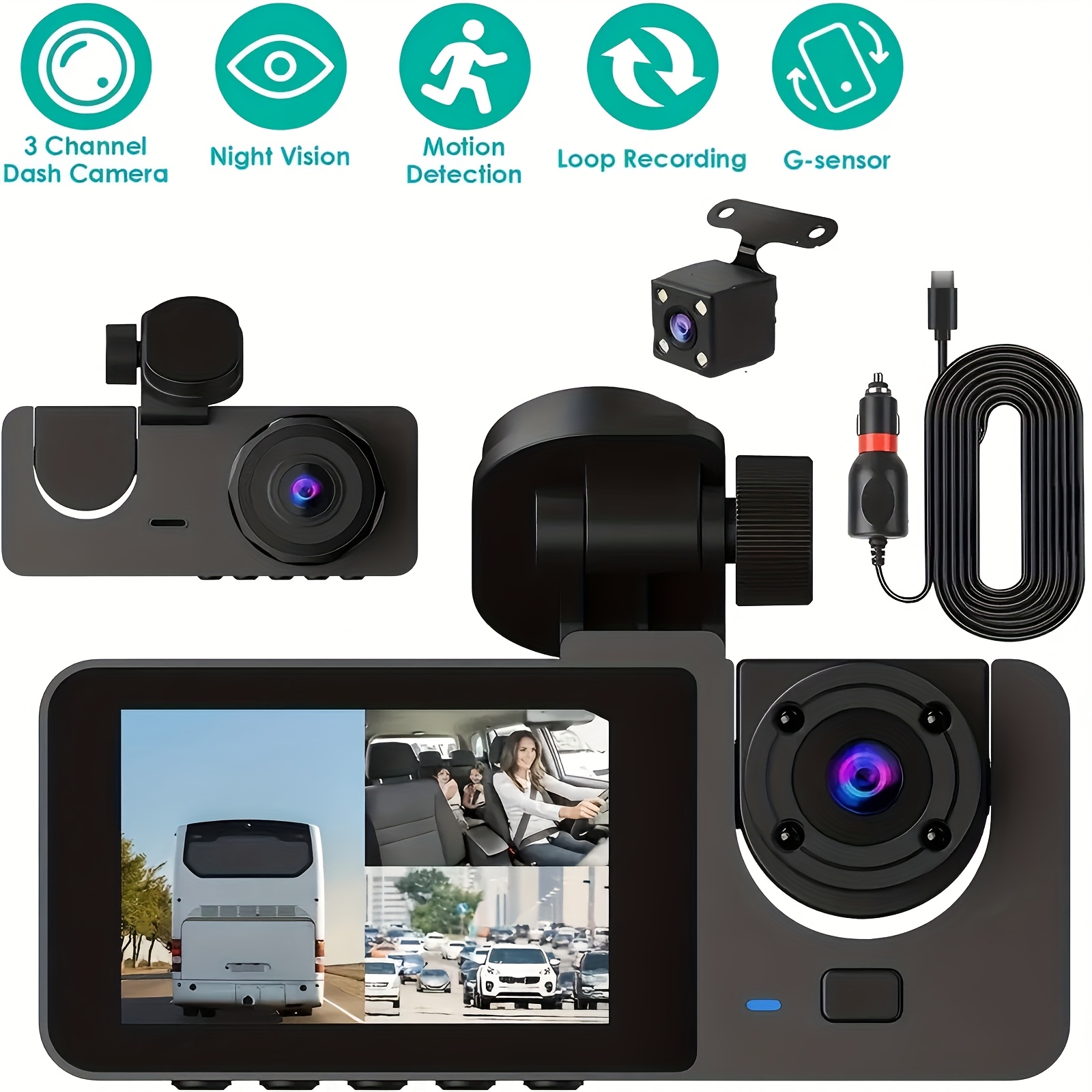 TEMU 3 Channel Front And Rear Built-in Dash Cam, 1...