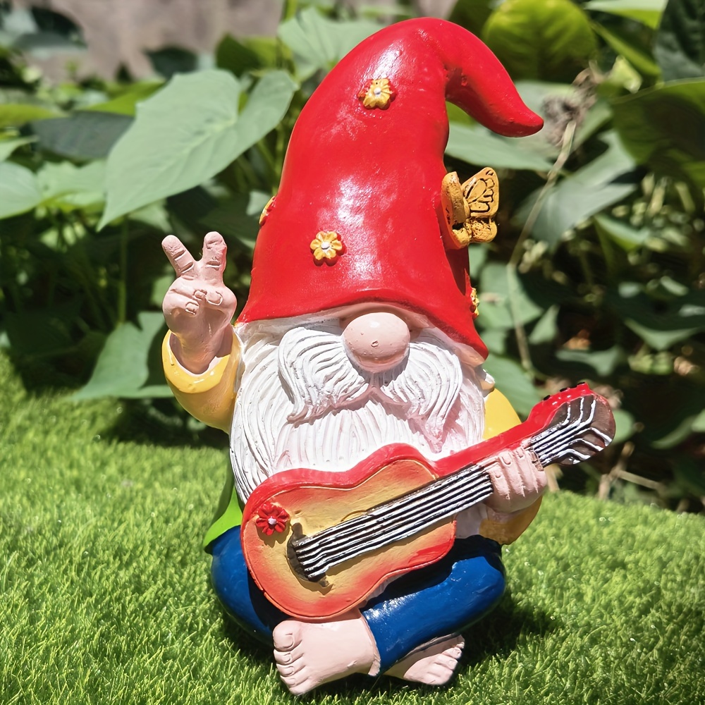 TEMU Whimsical Hippie Guitar Gnome Statue - Colorf...