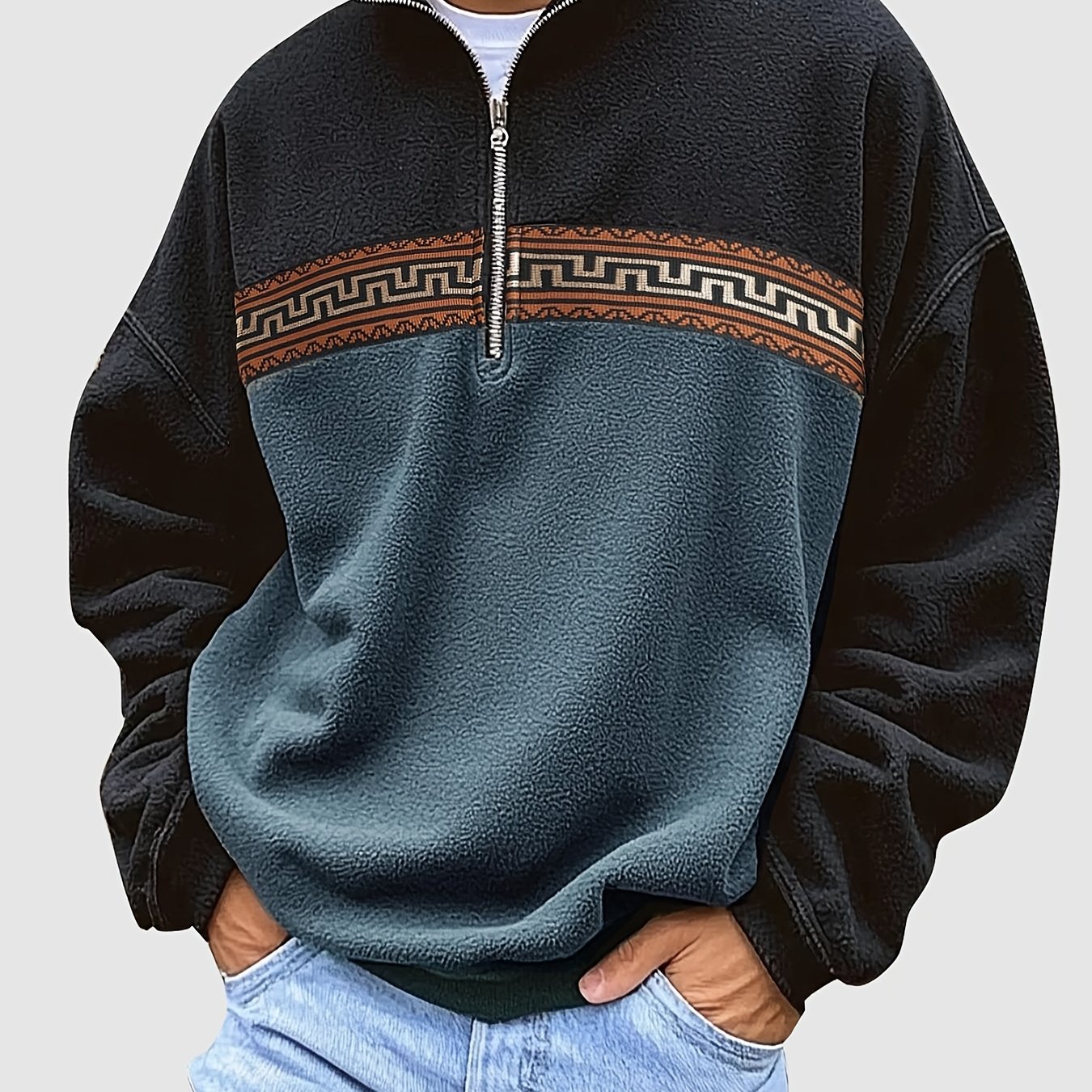 TEMU Men's Cozy Fleece Zip-up Hoodie With Geometri...