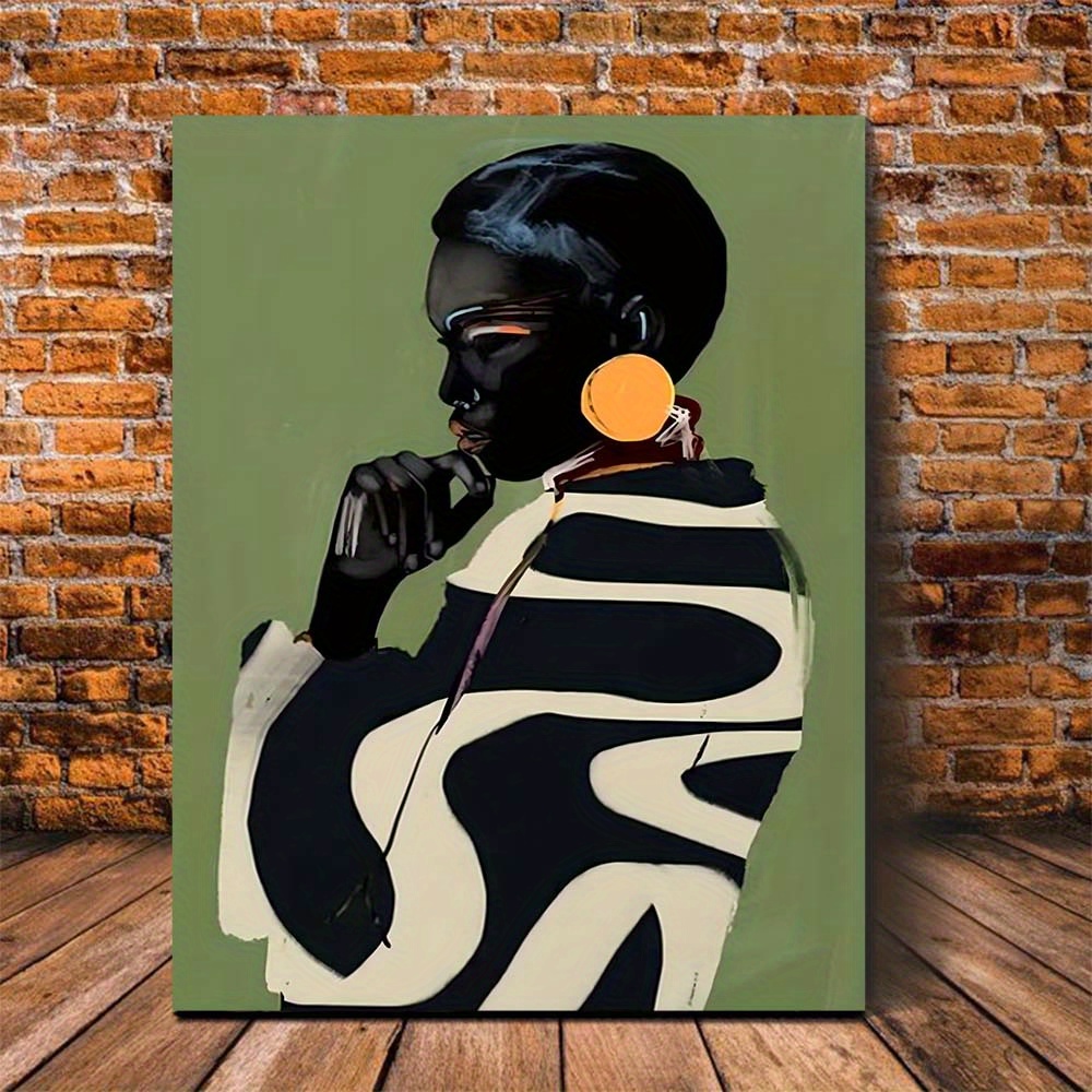 TEMU Modern Girl Portrait Canvas Art - Abstract Bl...
