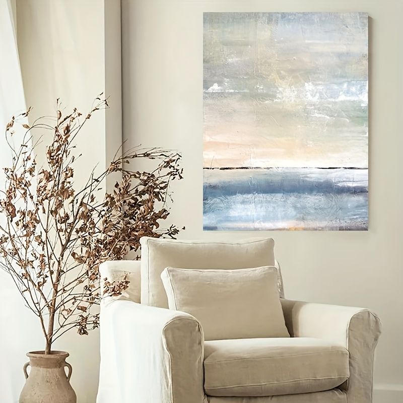 TEMU Modern Abstract Canvas Art - Hand-painted, Bl...