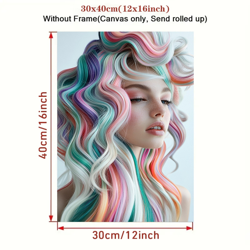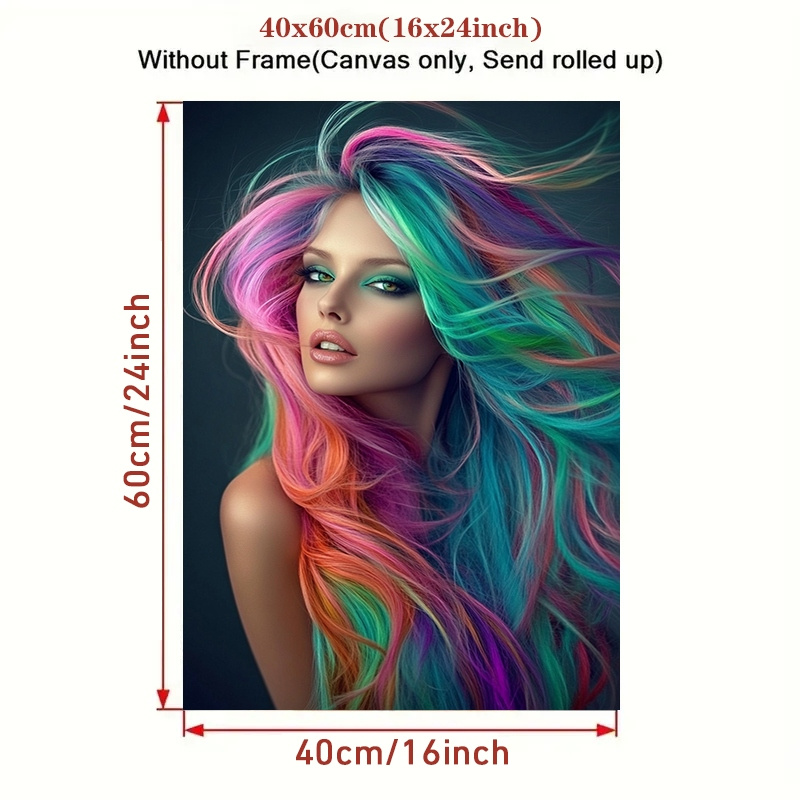TEMU Vibrant Hair Model Canvas Art - Waterproof & ...