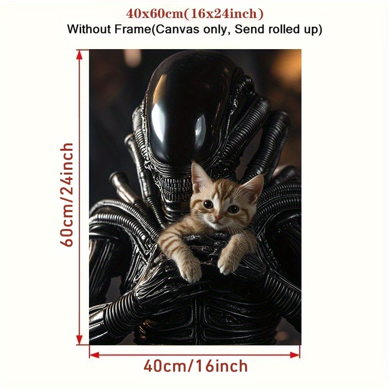 TEMU 1pc Frameless Canvas Poster - Cat Sitting On ...