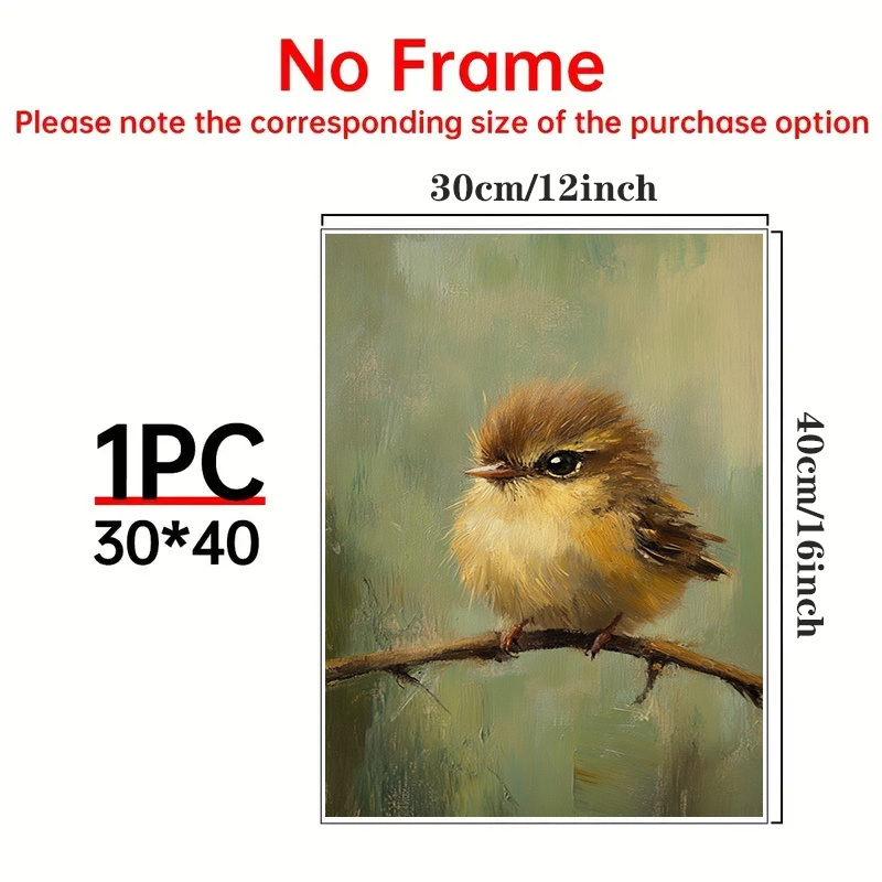 TEMU 1pc Frameless Canvas Wall Art - Small Bird On...