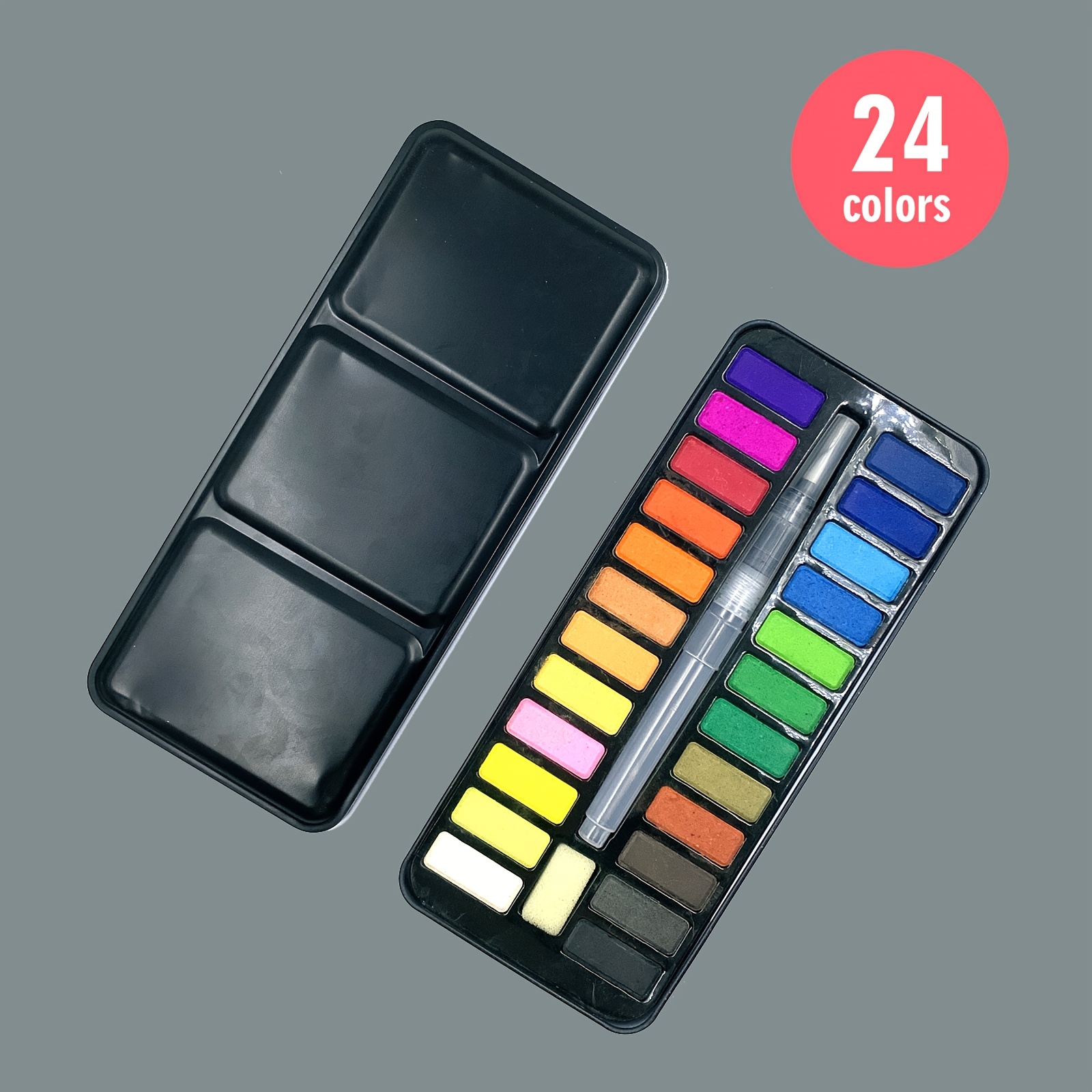 TEMU Portable Solid Watercolor Paint Set In Metal ...
