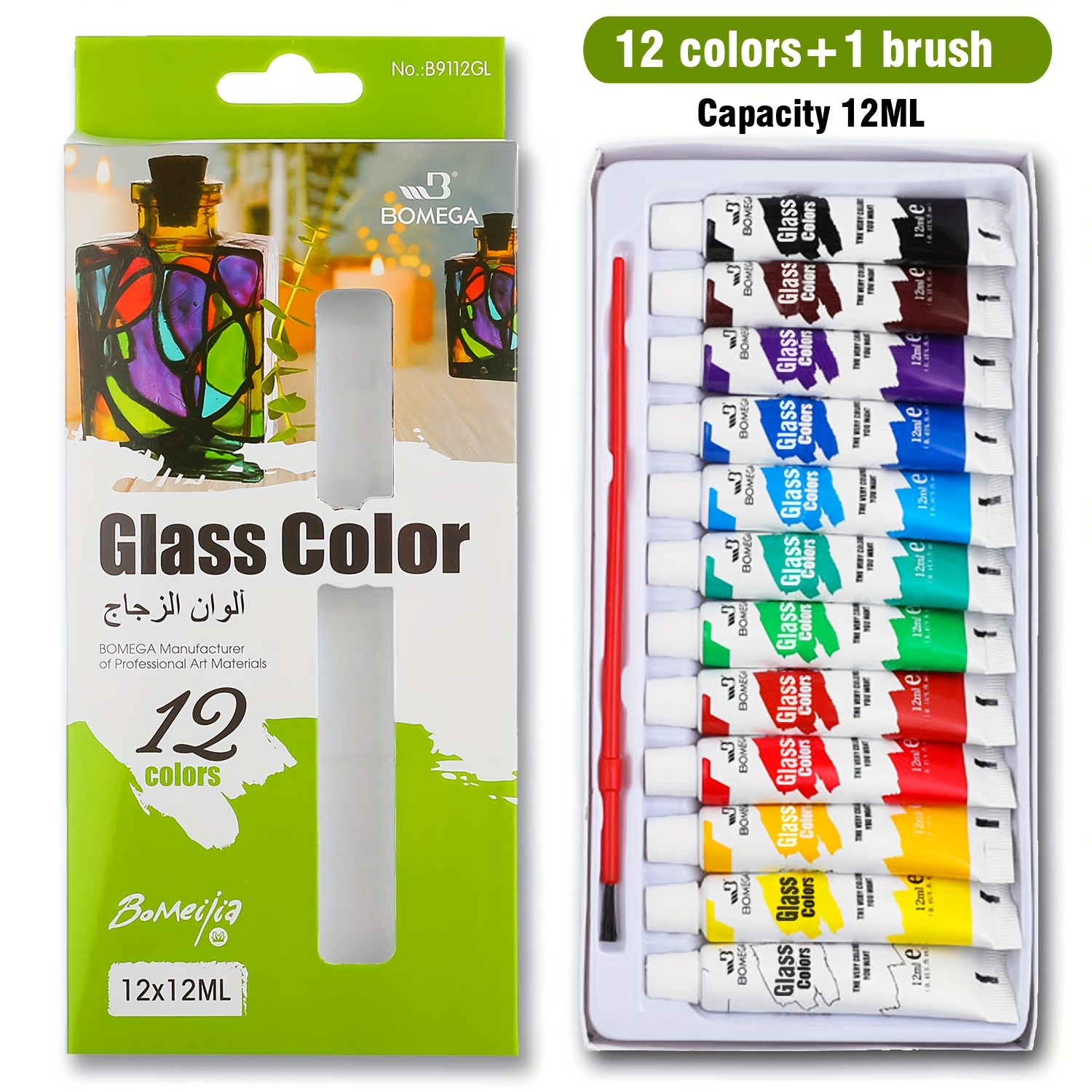TEMU 12 Colors Of Glass Paint, 6ml/12ml Transparen...