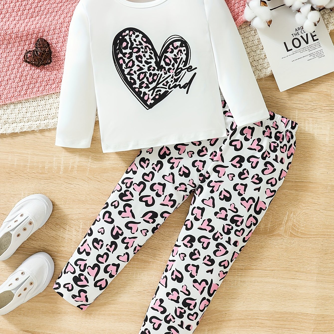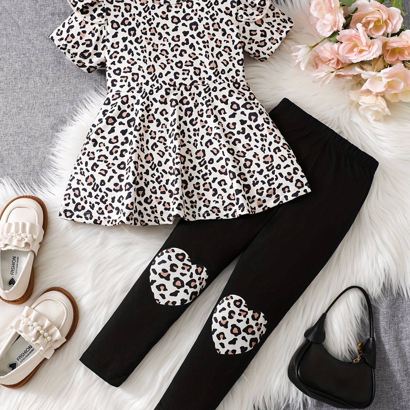 TEMU Girls' 2pcs Love Heart & Leopard Print Outfit...