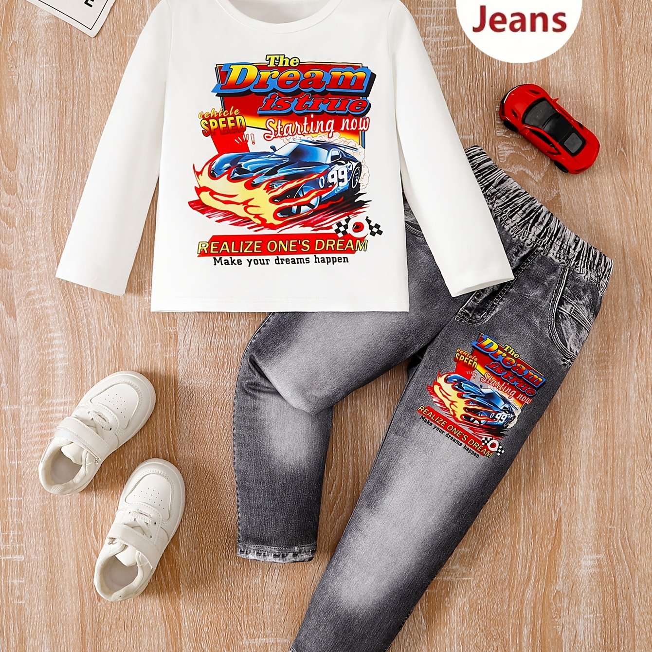 TEMU Casual Long Sleeve Top & Long Pants Set, Race...