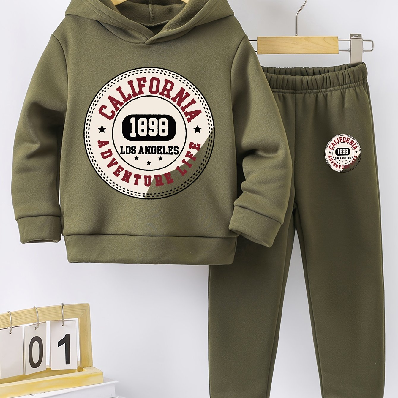 TEMU 2pcs Boy's "california " Print Fleece Outfit,...
