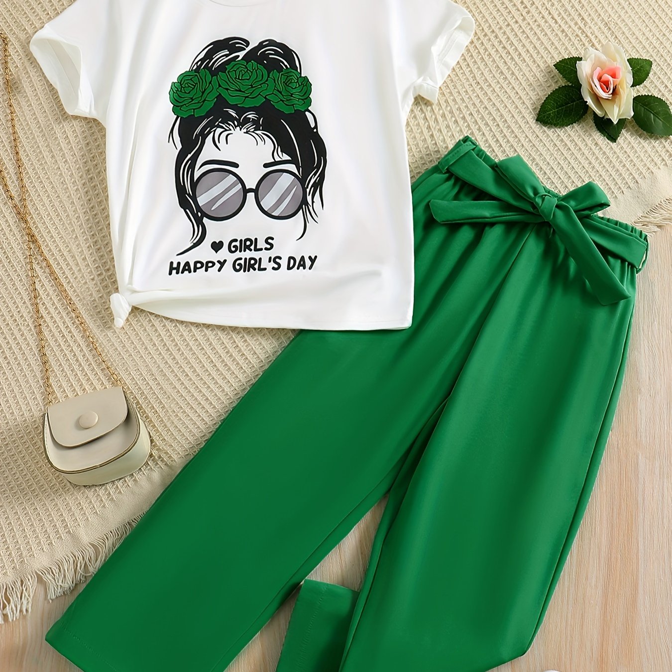 TEMU Girls' Two-piece Set With Colorful Letter Pri...