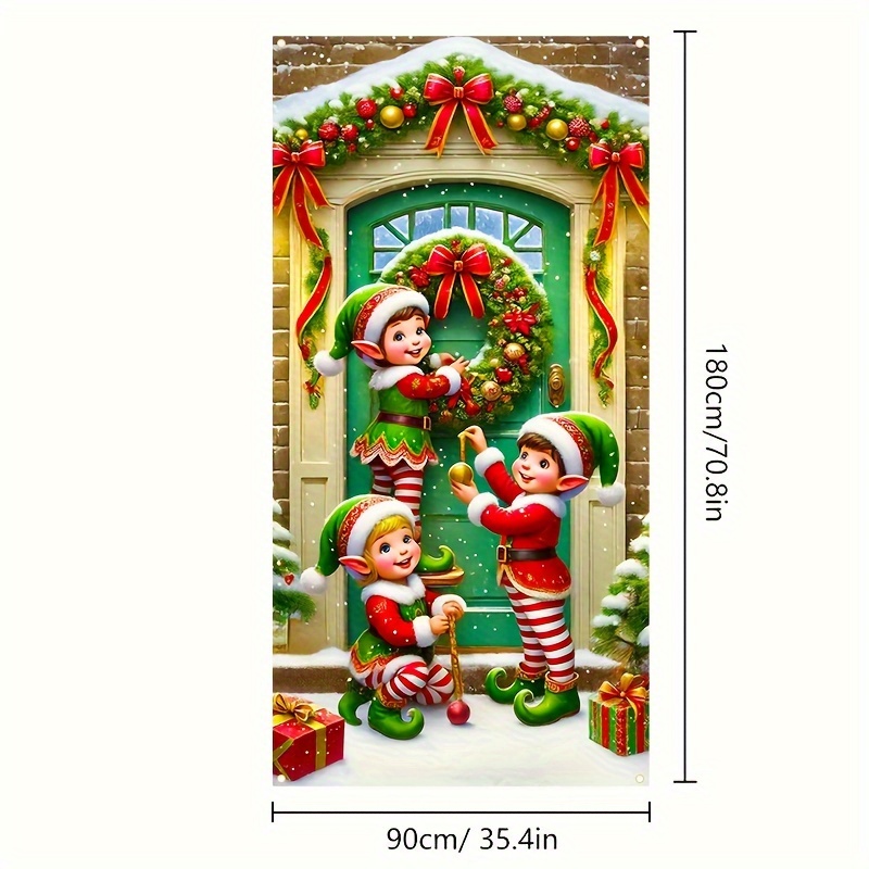 TEMU Christmas Elf Door Banner Set - Polyester Chr...