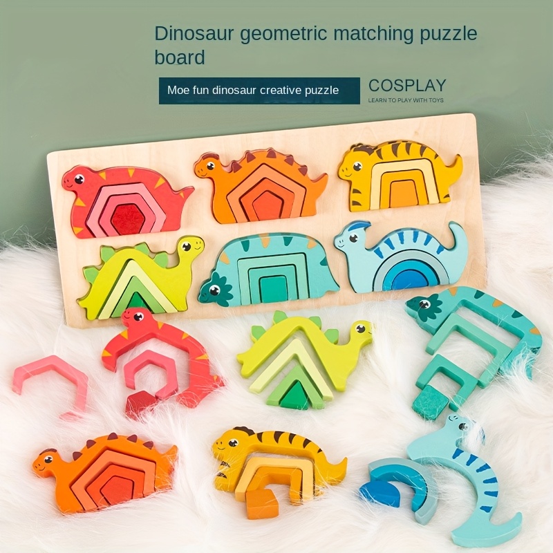TEMU Wooden Dinosaur Shaped Color Mixing Puzzle Se...