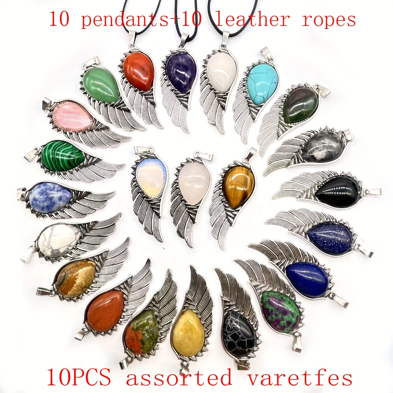 TEMU Bohemian Natural Stone Wing Pendants, 10pcs -...
