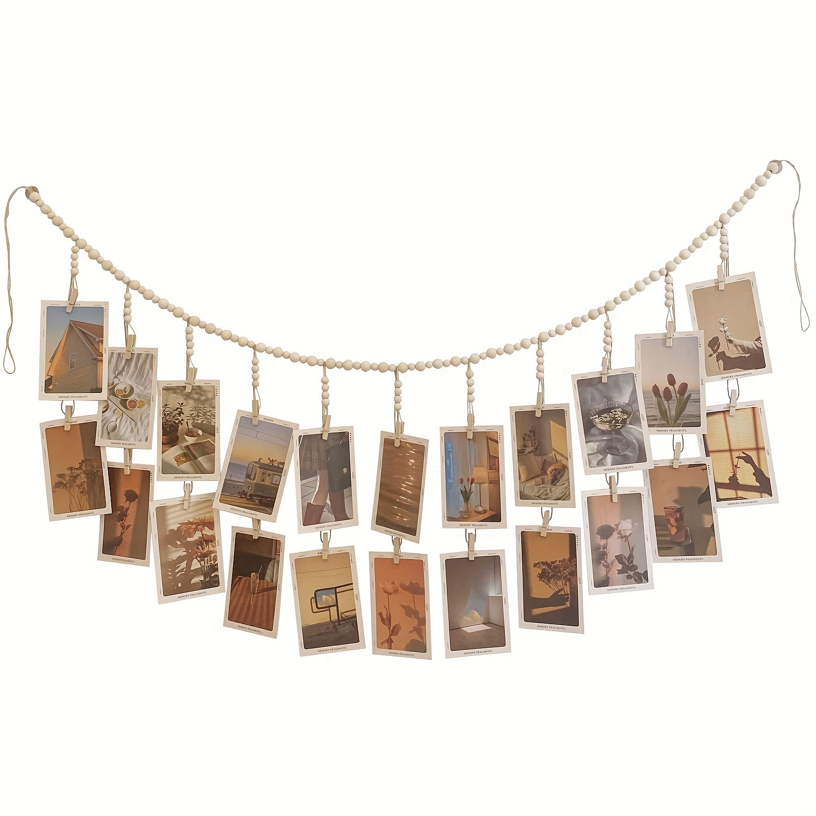 TEMU Boho Chic Wooden Photo Display, 18-slot Hangi...