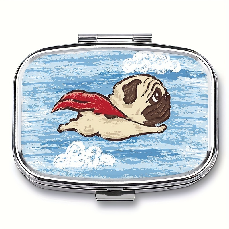TEMU 1pc Flying Pug Pattern Pill Box, 2 Compartmen...