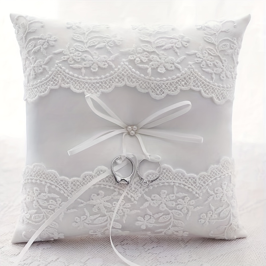 TEMU 1pc Bow Lace Wedding Ring Pillow, Romantic Pe...