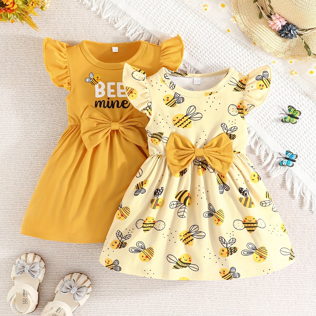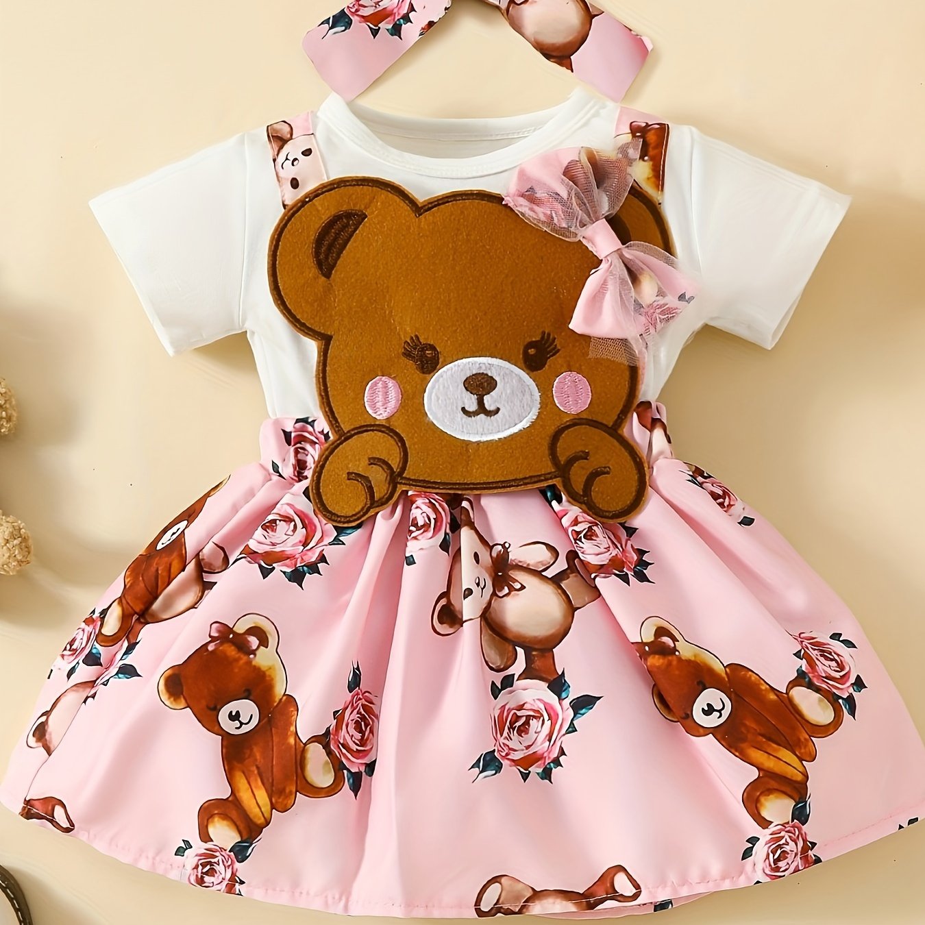 TEMU Cute Cartoon Bear Baby Girl Short Sleeve Dres...