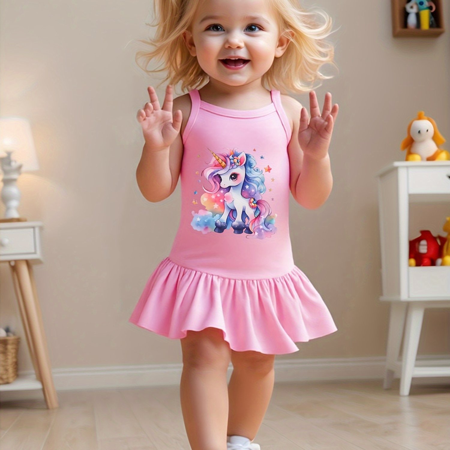 TEMU Girls' Sleeveless Rainbow Unicorn Print Dress...