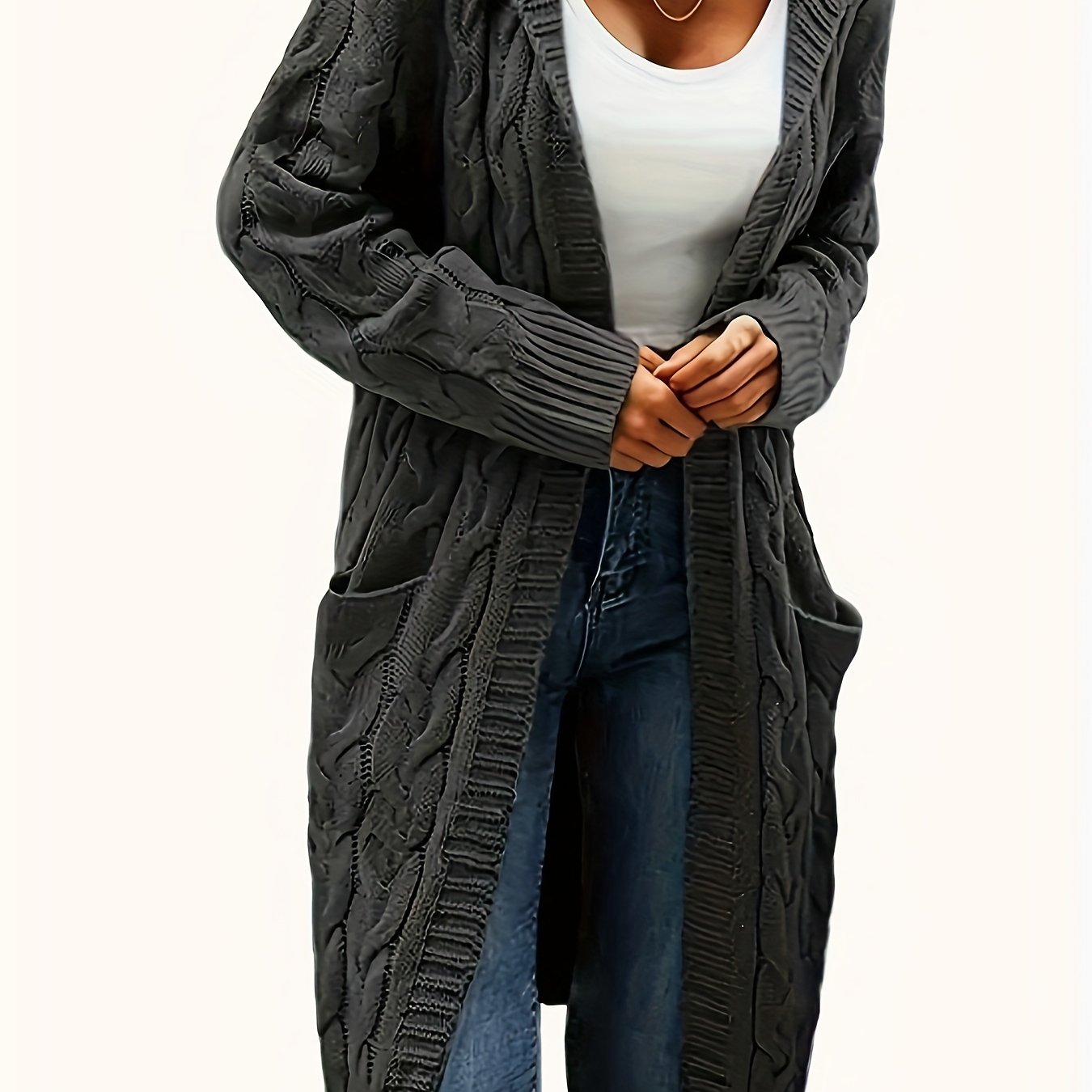 TEMU Knitted Casual Long Sleeve Pocket Hooded Card...