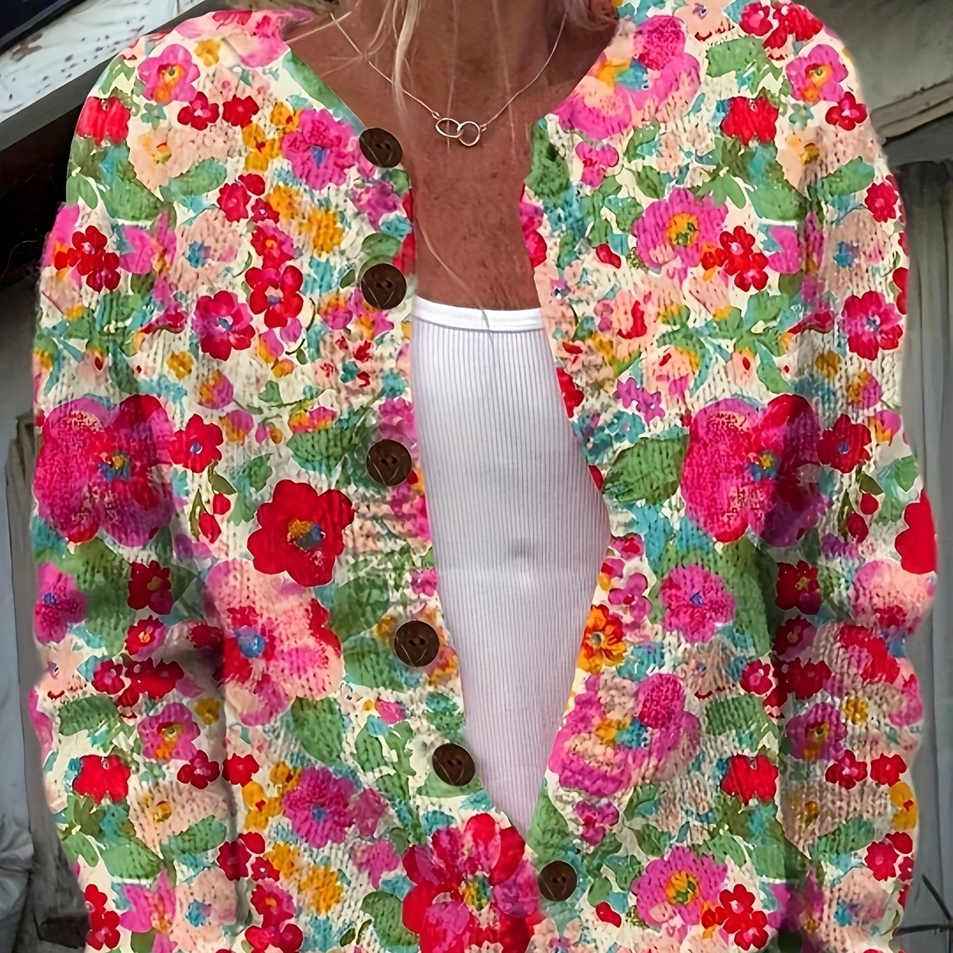 TEMU | Vibrant Floral Print Lightweight Cardigan F...