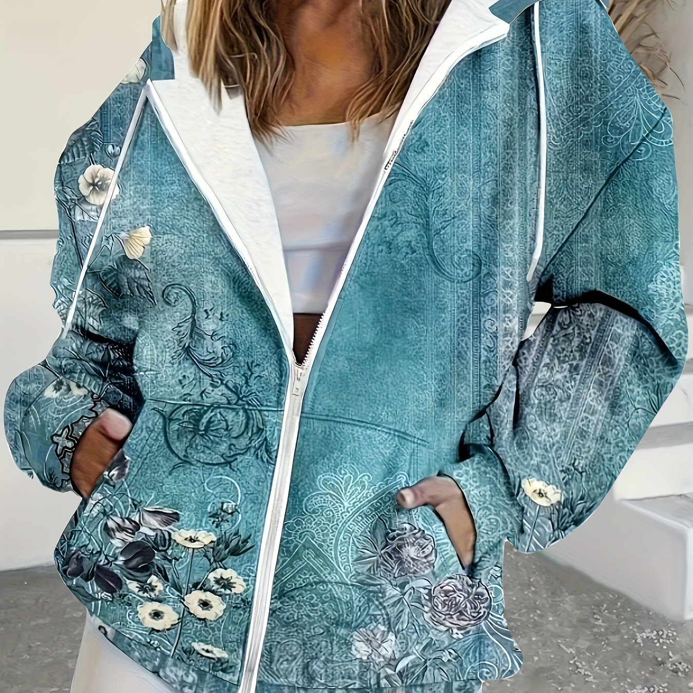 TEMU Plus Size Floral Pattern Drawstring Hooded Co...