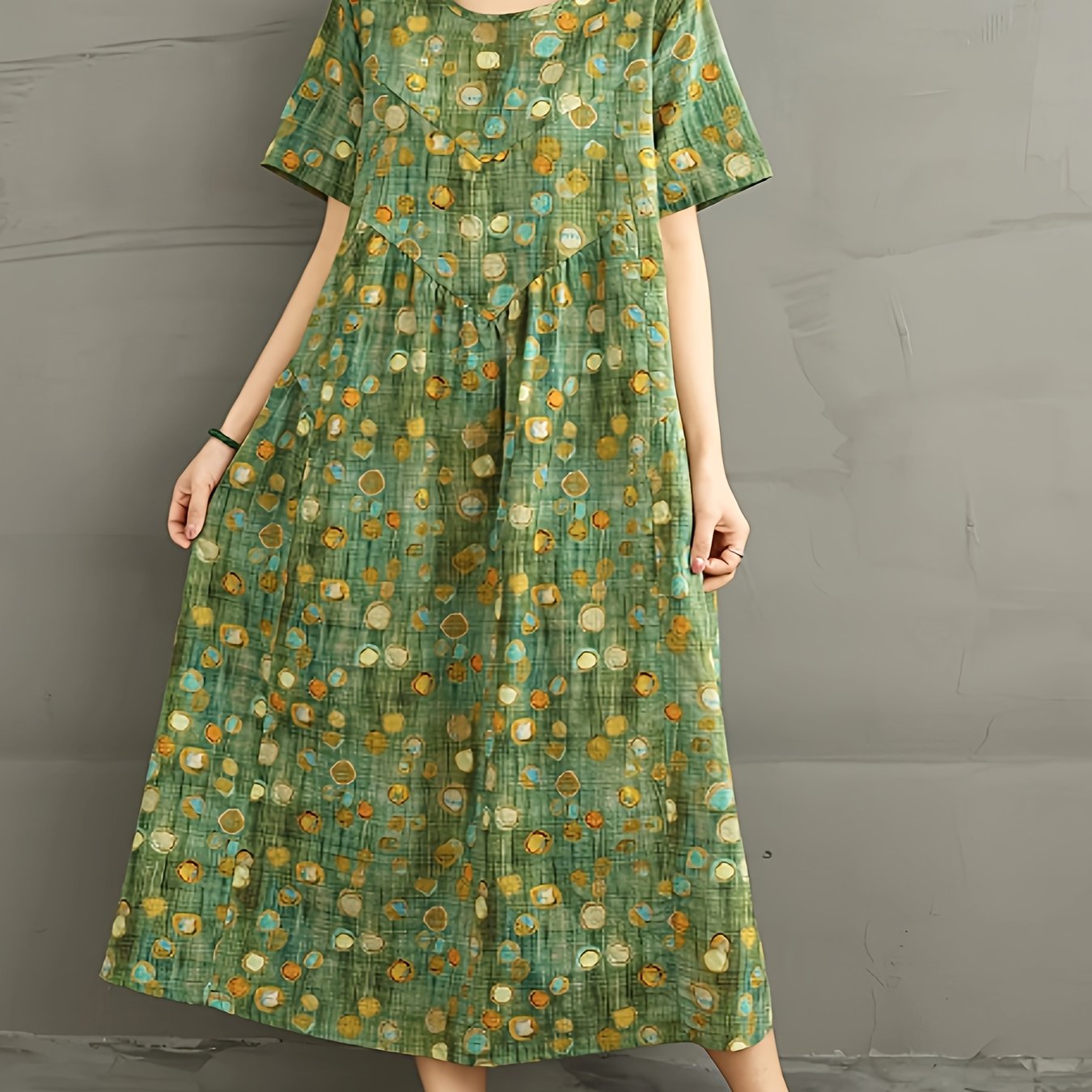 TEMU Women's Boho Style Linen Dress - Short Sleeve...
