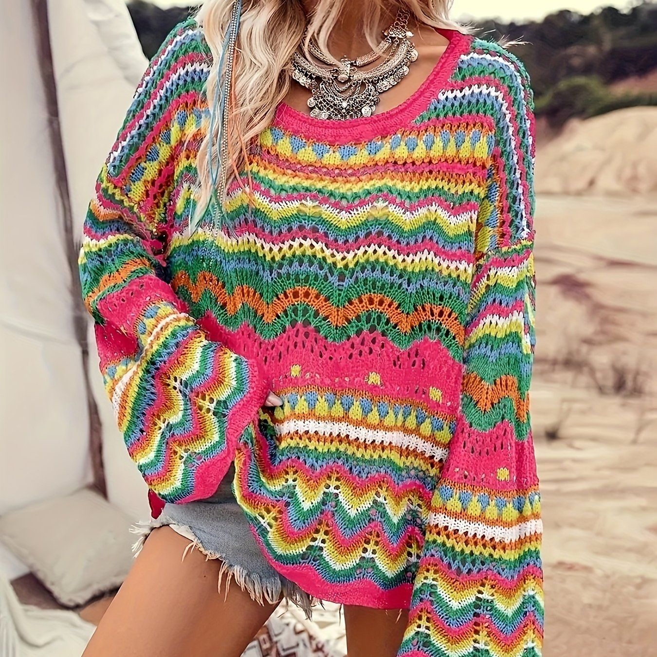 TEMU European And American Bohemian Style Round Ne...