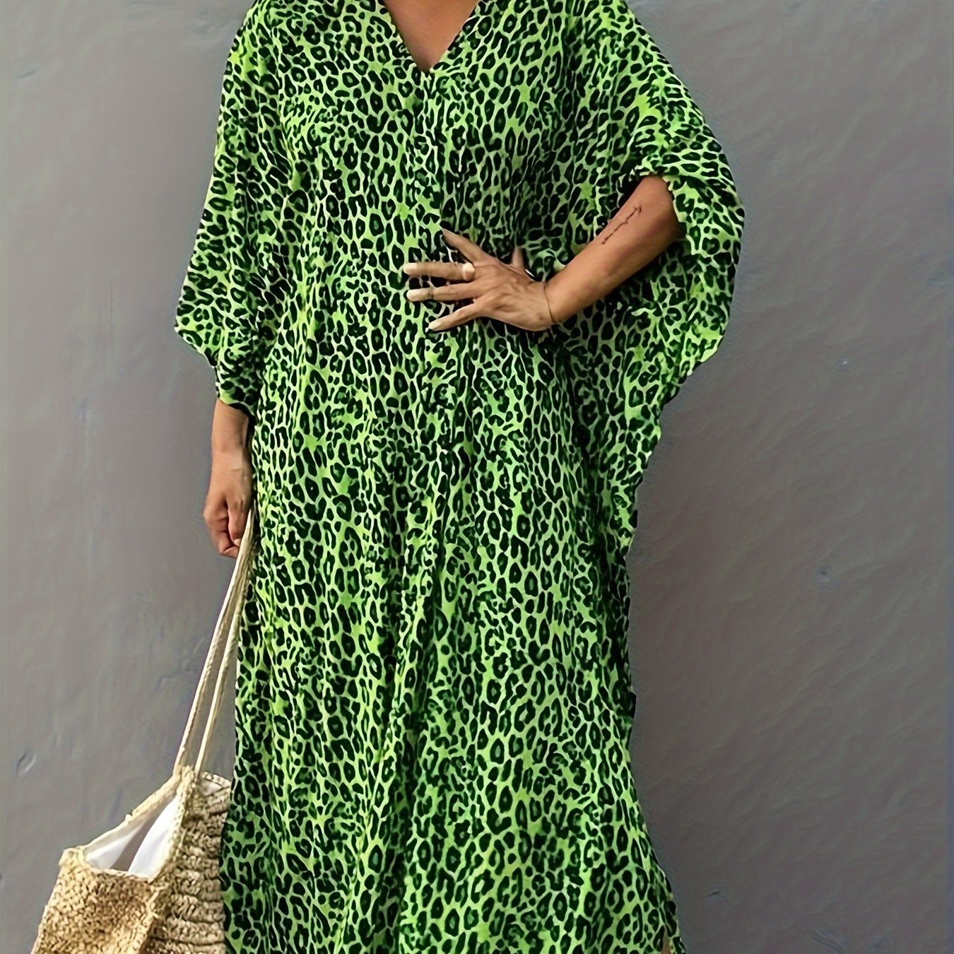 TEMU Women's Bohemian Leopard Print Maxi Dress - L...