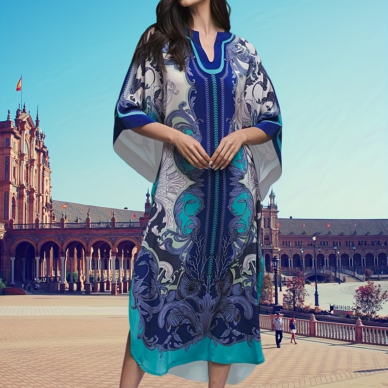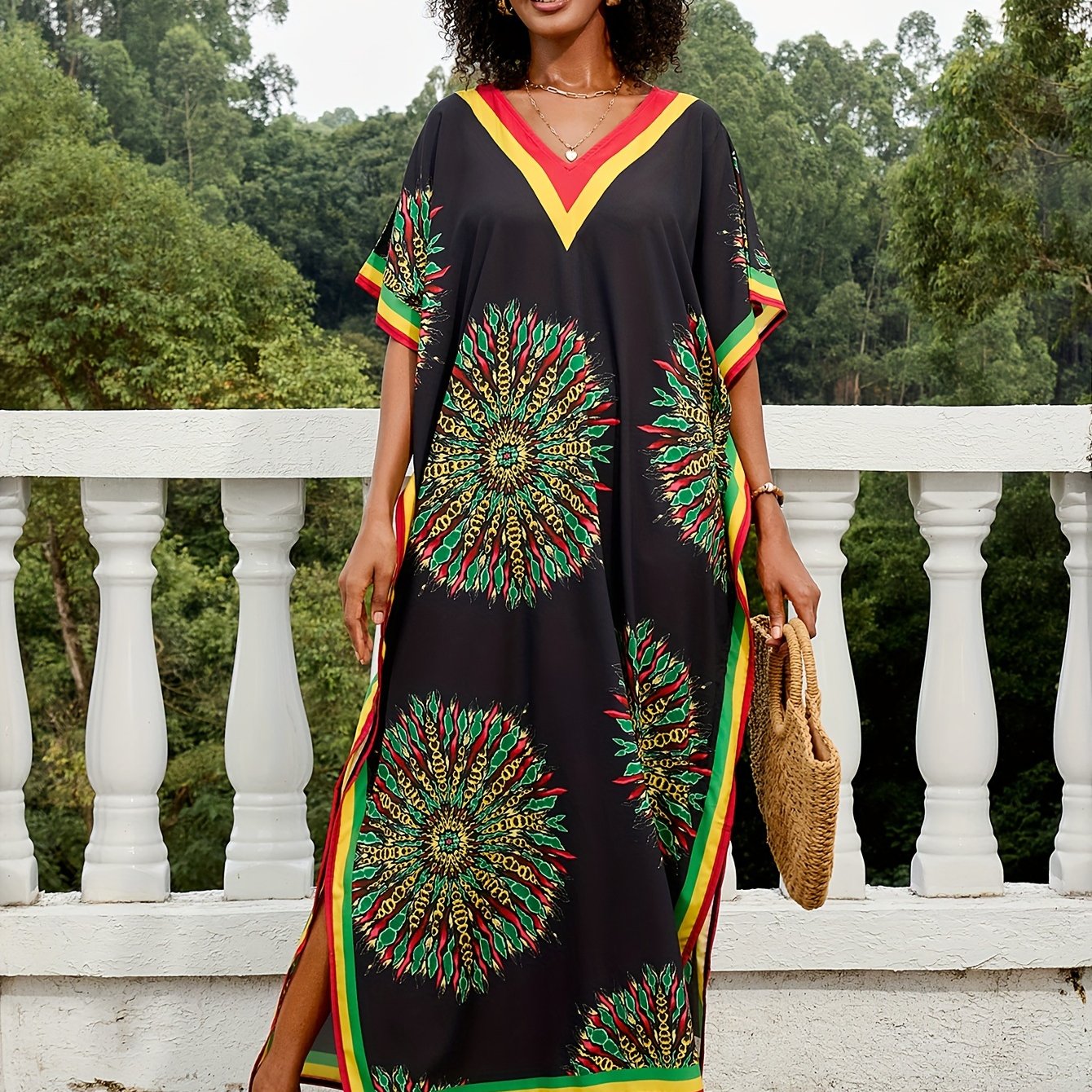 TEMU Plus Size Boho Beach Kaftan Dress - Vibrant T...