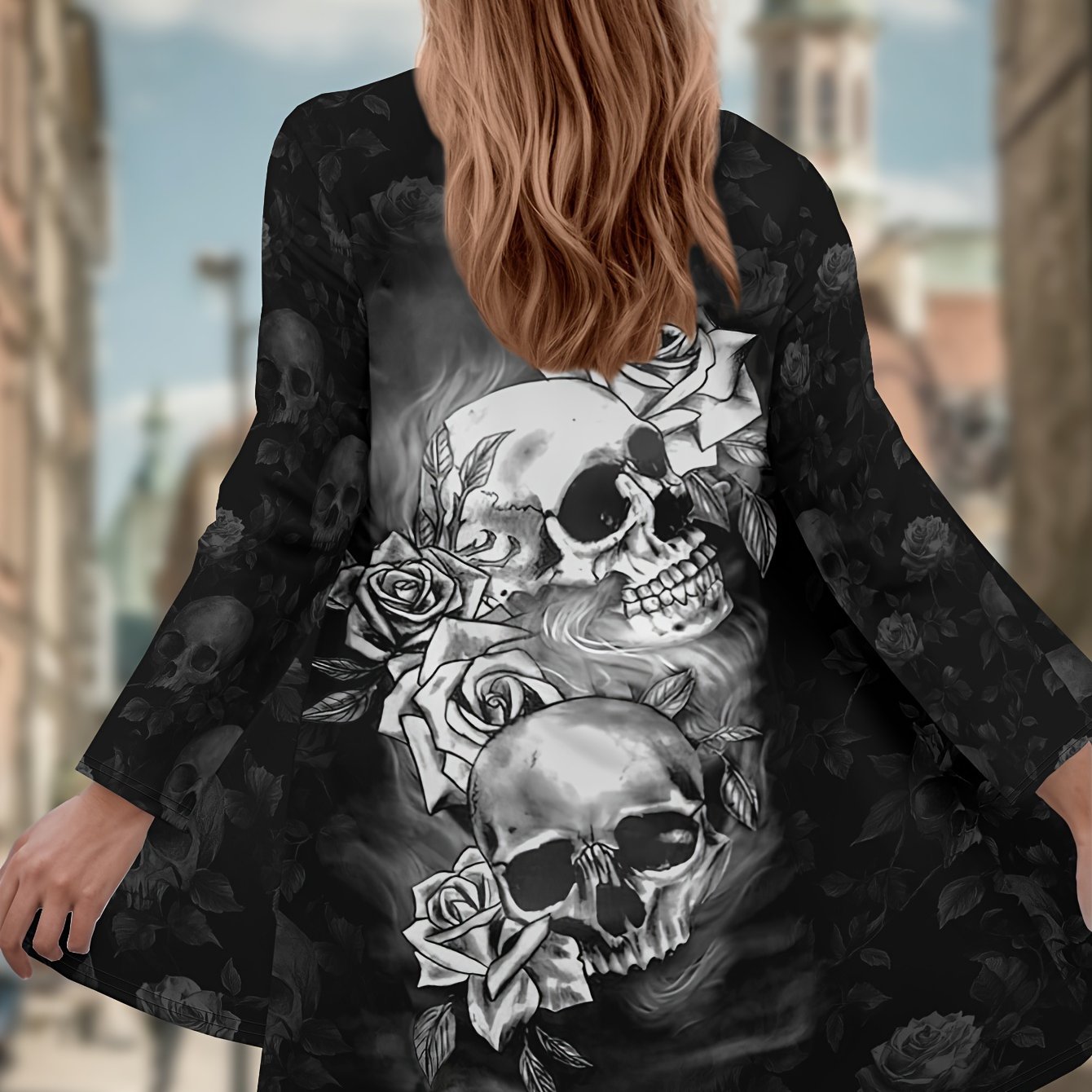 TEMU Übergröße Damen-Skull- & Blumenmuster-Cardiga...