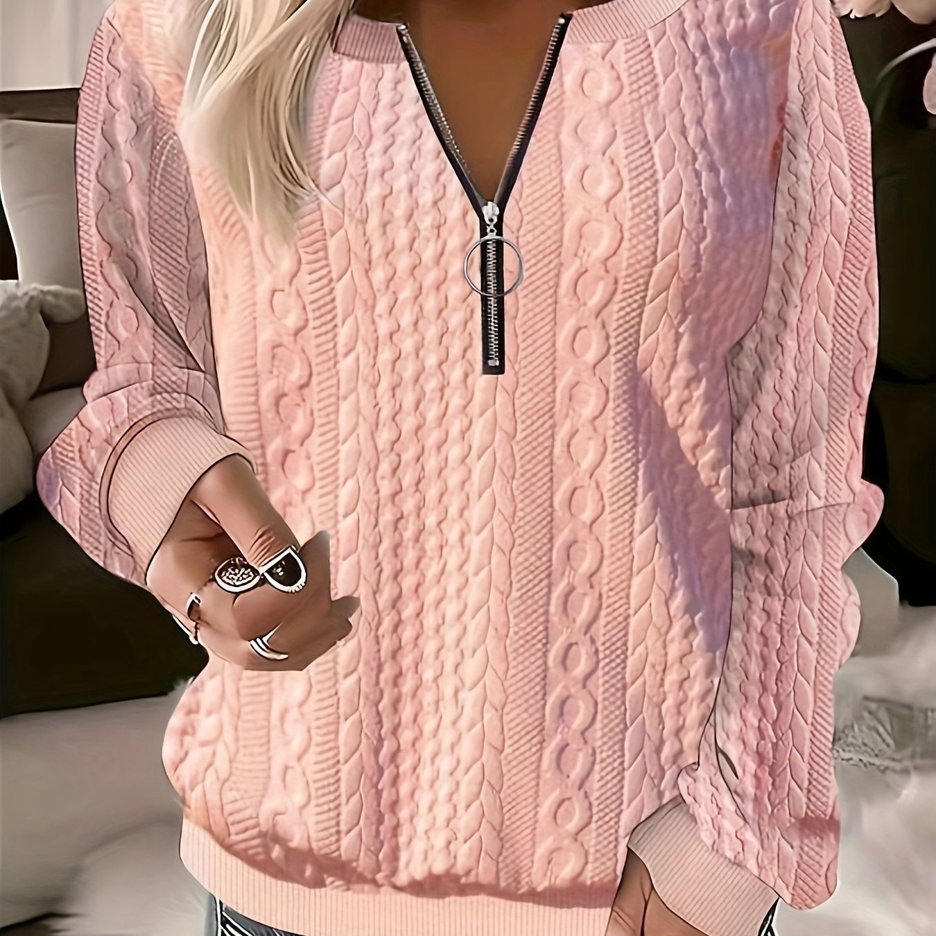 TEMU Plus Size Casual Top, Women's Plus Solid Cabl...