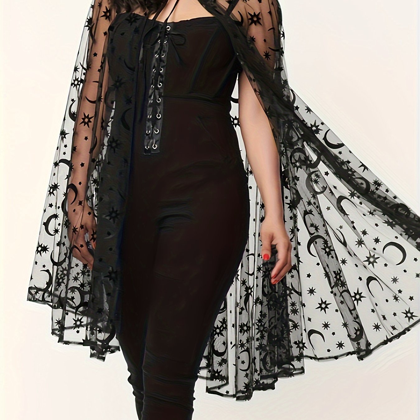 TEMU Plus Size Moon Pattern Mesh Cape, Casual Shee...