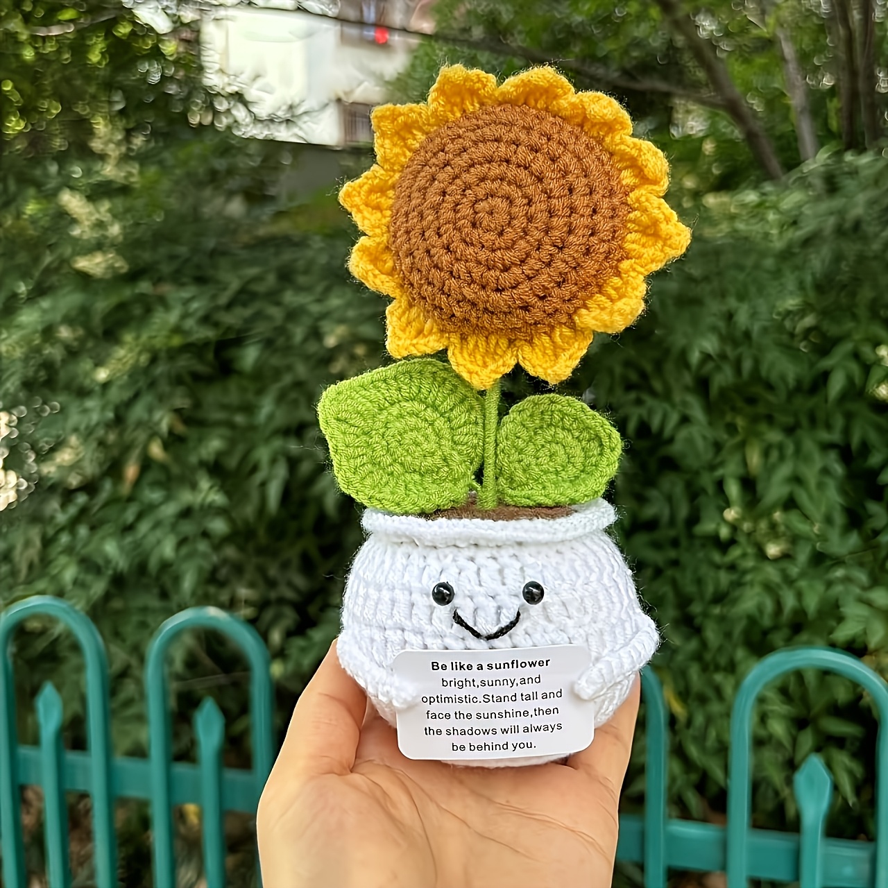 TEMU 17.5cm Handmade Crochet Sunflower Doll - Soft...
