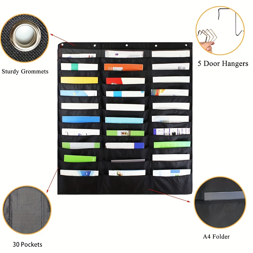 TEMU Black Classroom Pocket Chart - 30 Rainbow Poc...