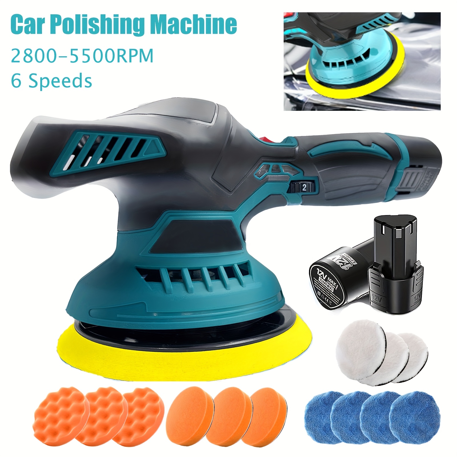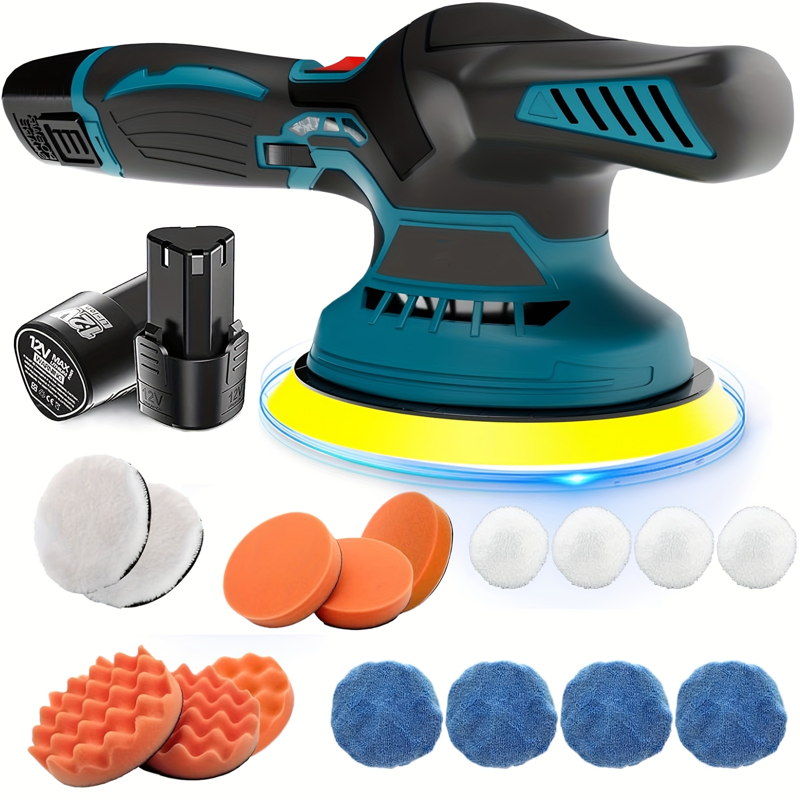 TEMU 12v Cordless Car Buffer Polisher, 6 Inch Poli...