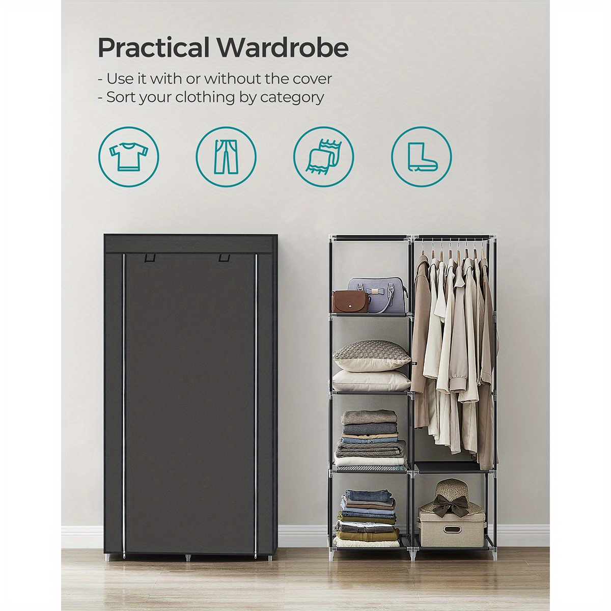 TEMU Fabric Canvas Wardrobe With Clothes Hanging R...